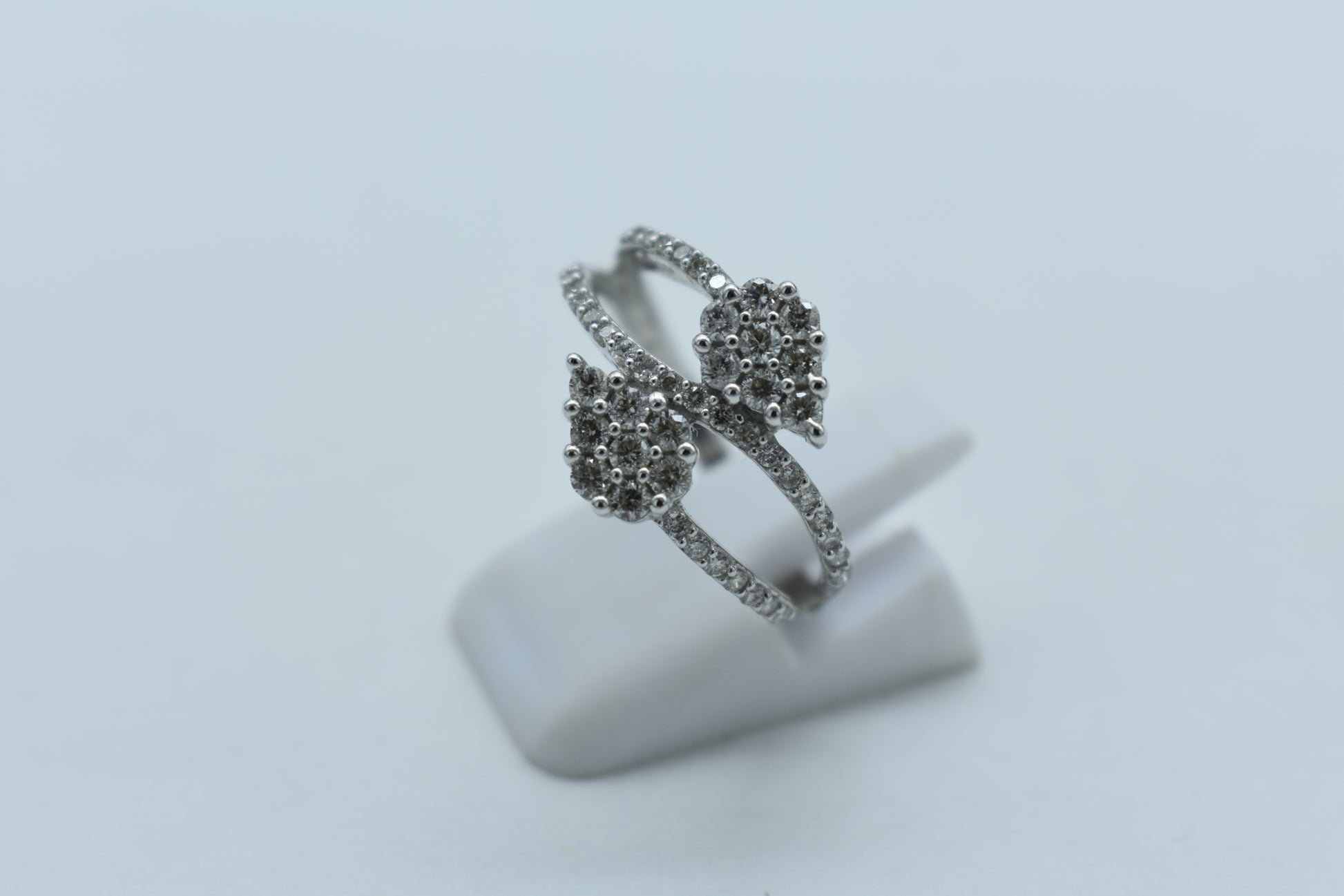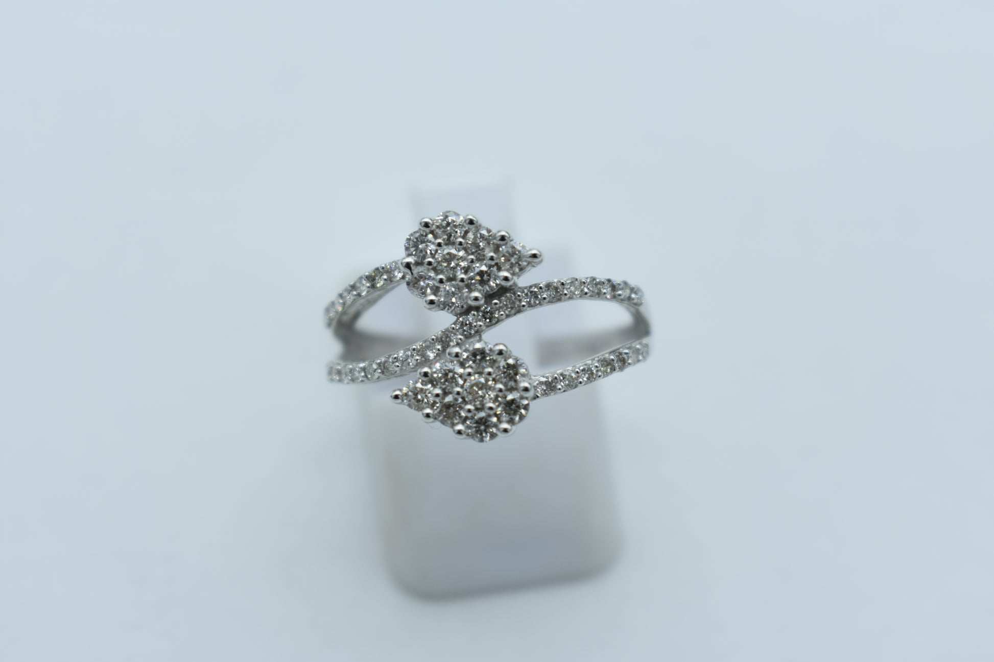 Anello di 3.80 grammi di oro bianco 750/1000 con 0.84 carati di diamanti. L'anello ha una misura di 14 cm