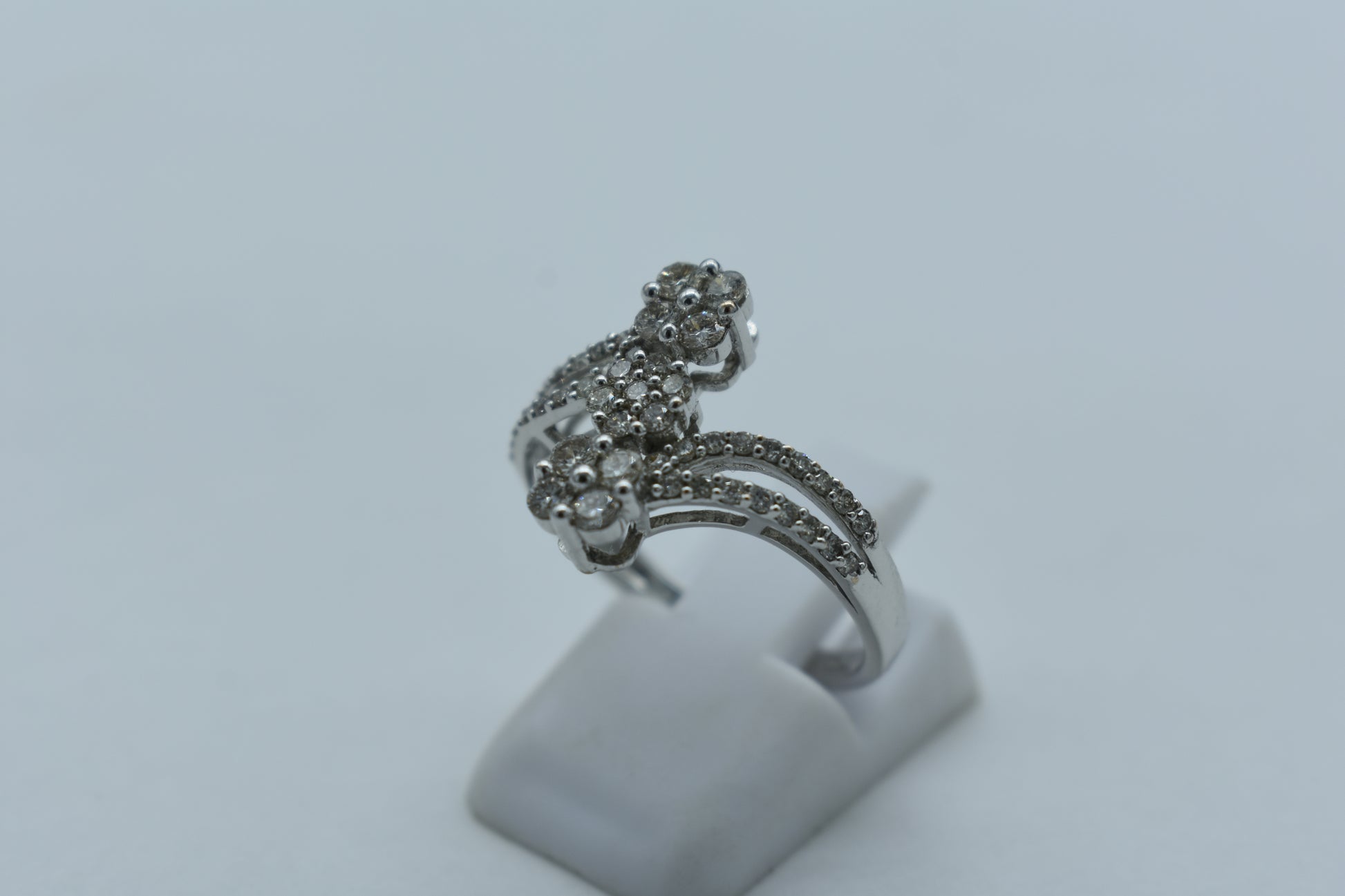 Anello di 3.50 grammi di oro bianco 750/1000 con 0.90 carati di diamanti. L'anello ha una misura di 14 cm