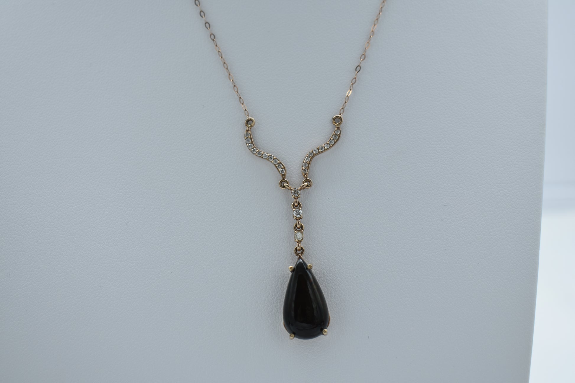 Collana di 3.20 grammi di oro rosa 750/1000 con 0.43 carati di diamanti e 4.55 carati di opale