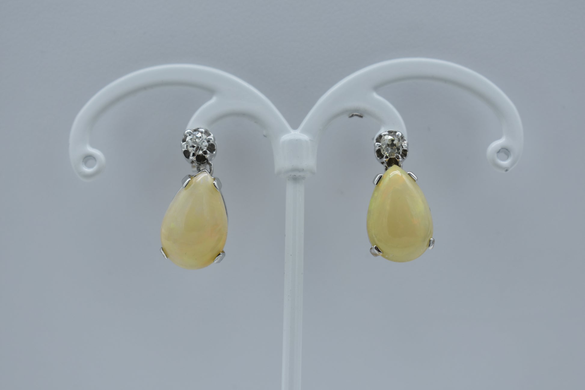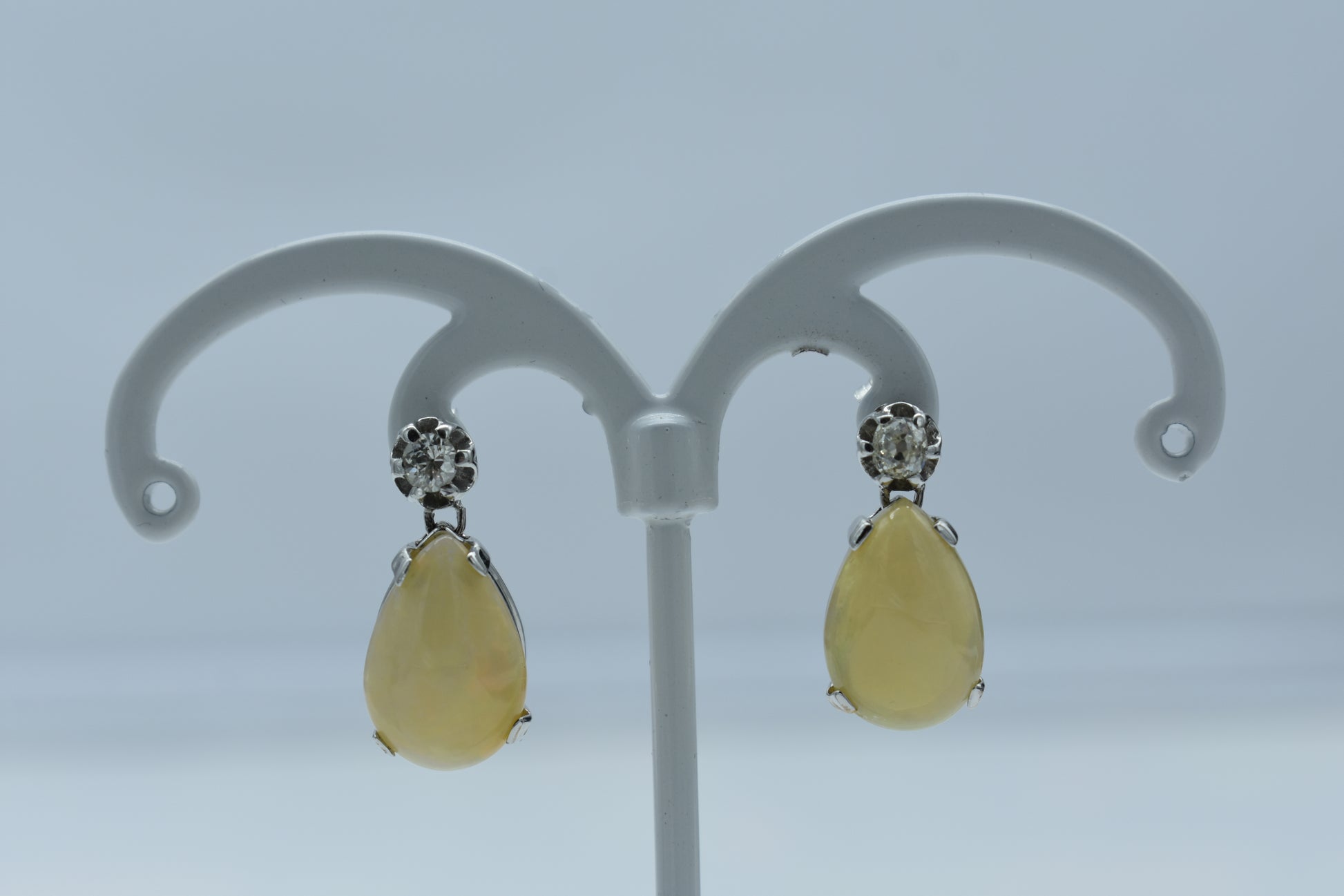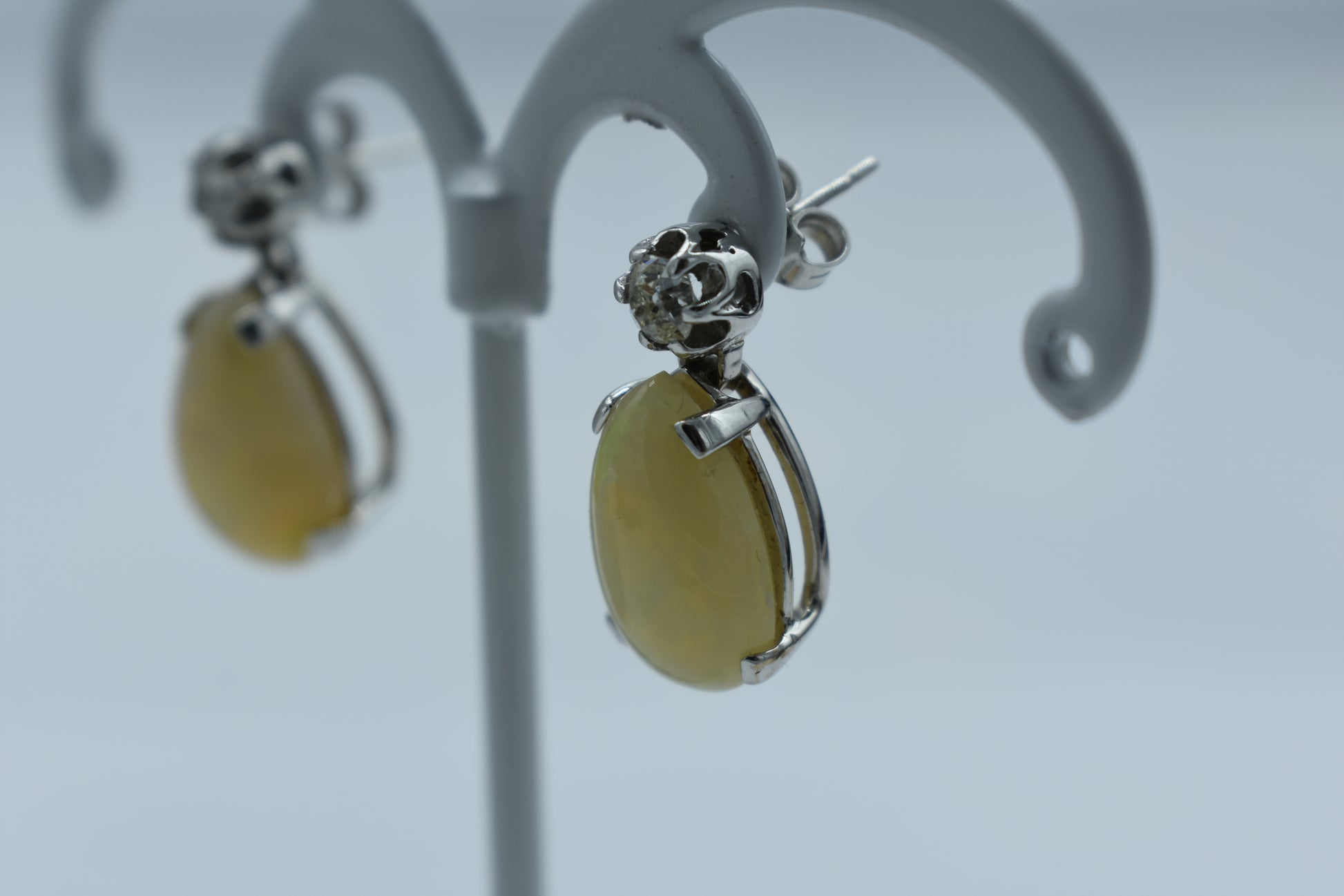 Orecchini di 5.20 grammi di oro bianco 750/1000 con 0.58 carati di diamanti e 7.80 carati di opale