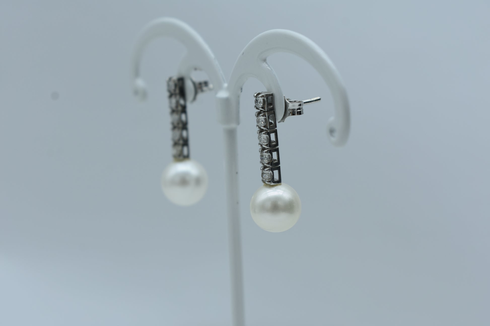 Orecchini di 4.70 grammi di oro bianco 750/1000 con 0.60 carati di diamanti e 10.00 carati di perle