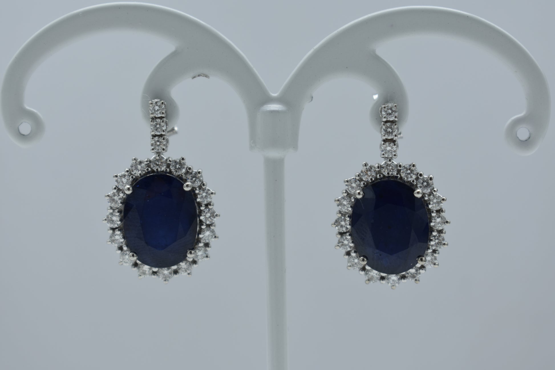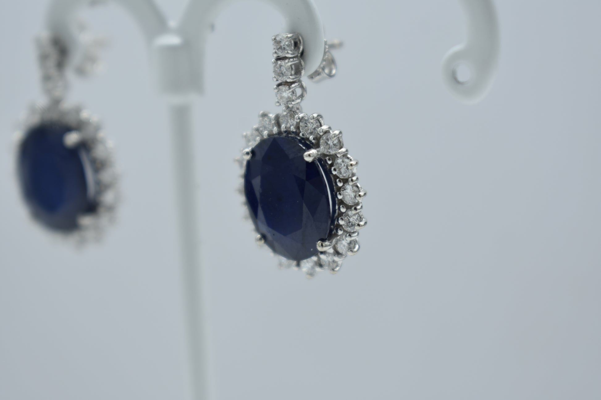 Orecchini di 8,70 grammi di oro bianco 750/1000 con 1.33 carati di diamanti e 9.85 carati di zaffiro