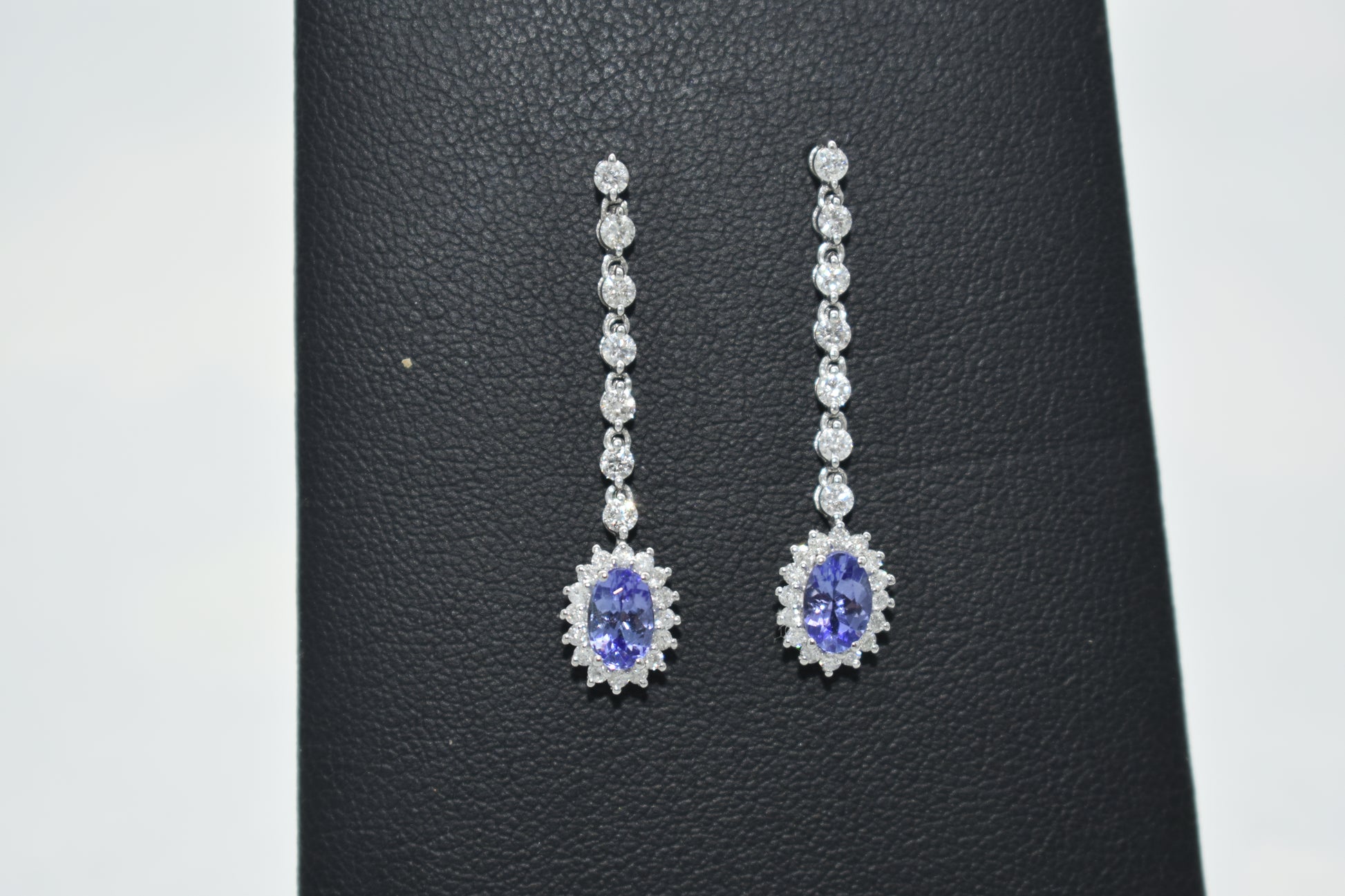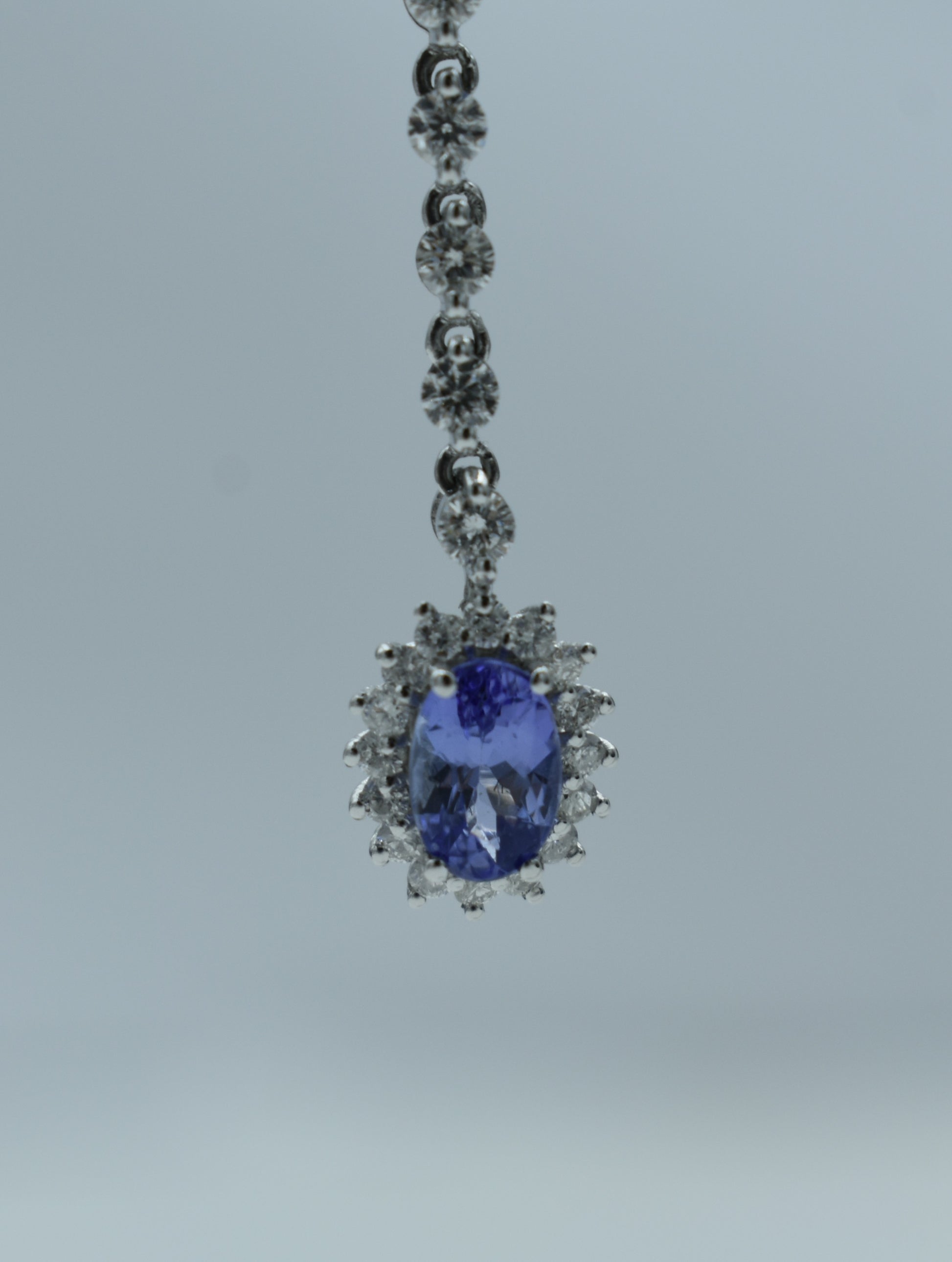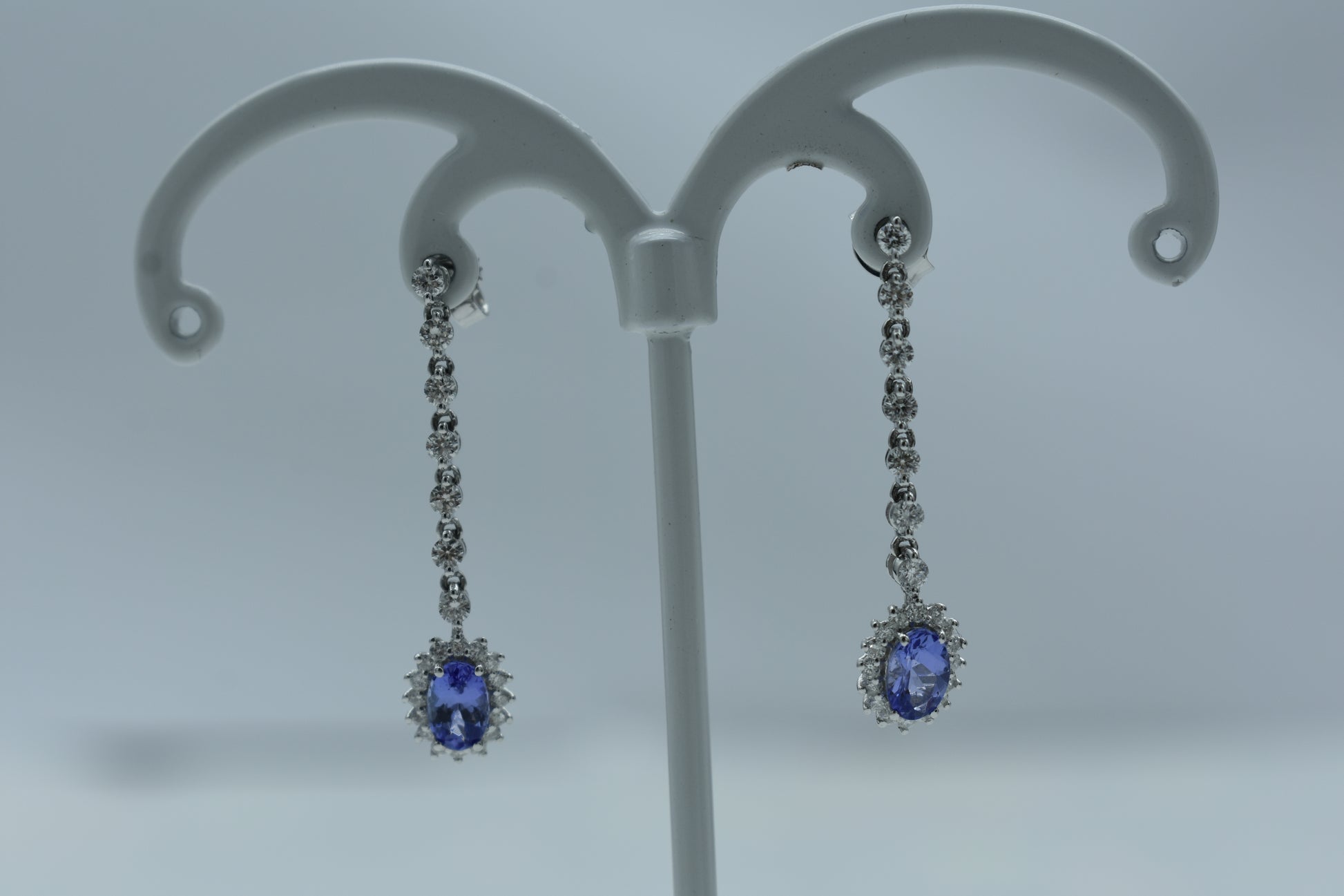 Orecchini di 2.80 grammi di oro bianco 750/1000 con 1.04 carati di diamanti e 1.18 carati di tanzanite