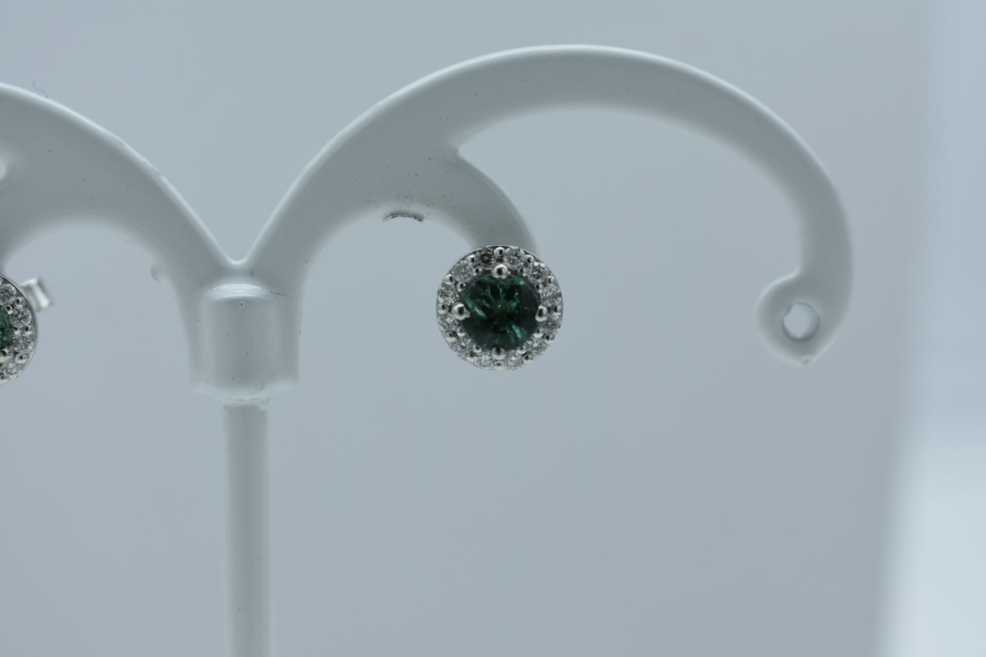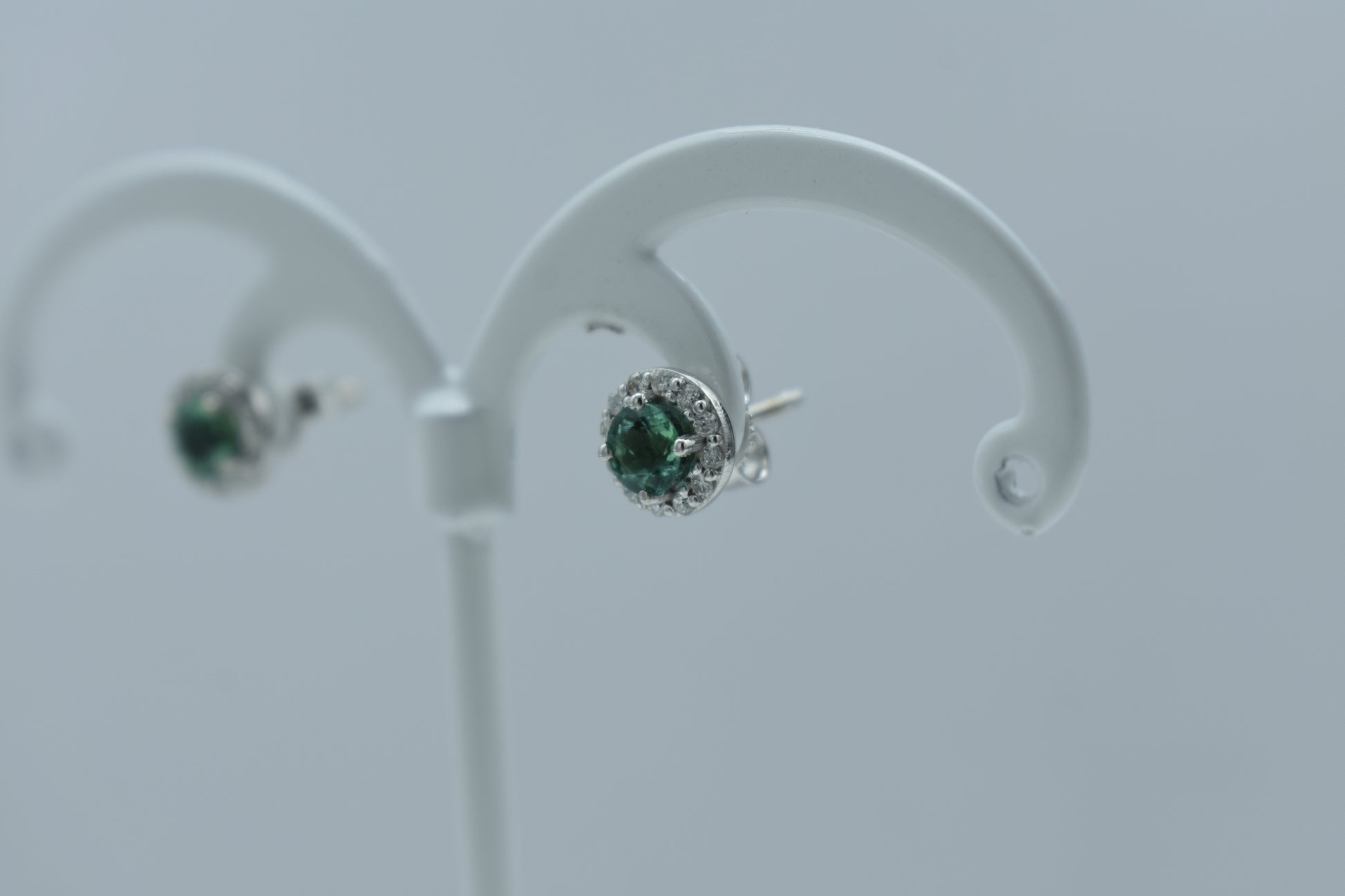 Orecchini di 2.00 grammi di oro bianco 750/1000 con 0.24 carati di diamanti e smeraldi di 0.70 carati.